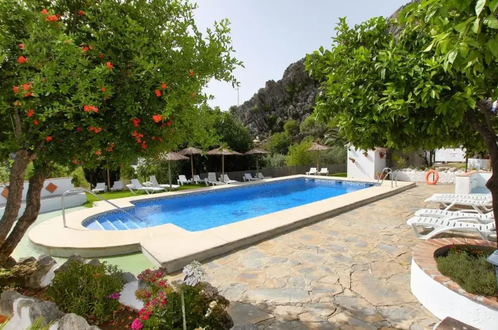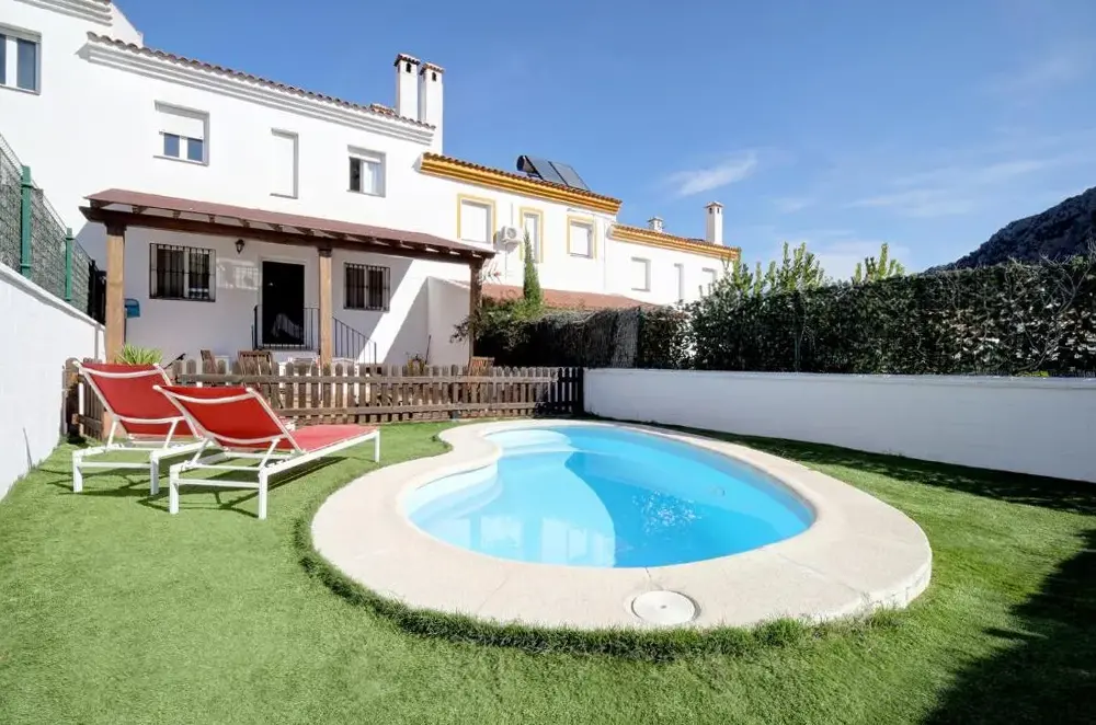 Weitere Informationen zu Magnífica casa con piscina privadaCasitas de la Sierra bietet eine ruhige und idyllische Unterkunft in Montejaque, eingebettet in eine malerische Landschaft. Die Anlage besteht aus mehreren kleinen Häusern, die mit einem Außenpool, einem gepflegten Garten und Spielplätzen für Kinder ausgestattet sind. Jedes Zimmer verfügt über einen Außenbereich, teilweise sogar über eigenständigen Gartenraum.