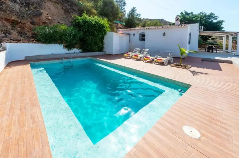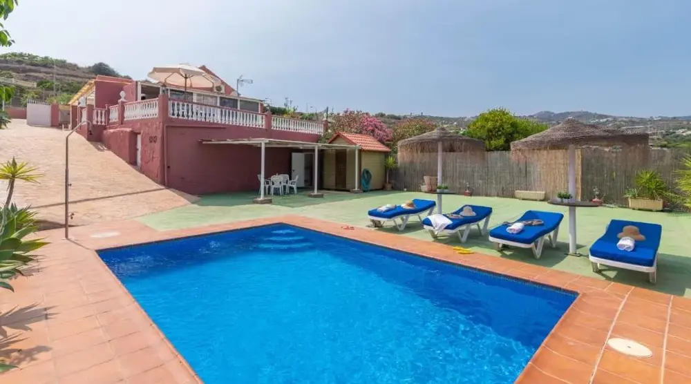 Ulteriori informazioni su Villa Las Palmeras de Torrox by RuralidaysCasa Rueapara offre un ambiente ideale per famiglie con spazi dedicati ai bambini, tra cui area giochi e campo da calcio. L'unità presenta una piscina all'aperto accessibile con doccia esterna, sedie relax e posti per riposare. Il parcheggio gratuito è disponibile vicino alla struttura. Situata in Avenida de Competa, 29793 Torrox, l'ospitalità garantisce comfort e tranquillità.